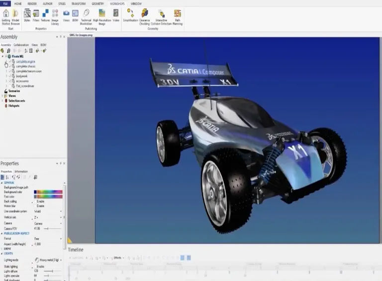 CATIA Composer 可为开发和部署 2D/3D 图像或动画提供无与伦比的工具集,以满足各种交流沟通需求,包括产品文档、技术插图、动态装配指导、交互式服务和培训应用程序以及销售和营销资料。
